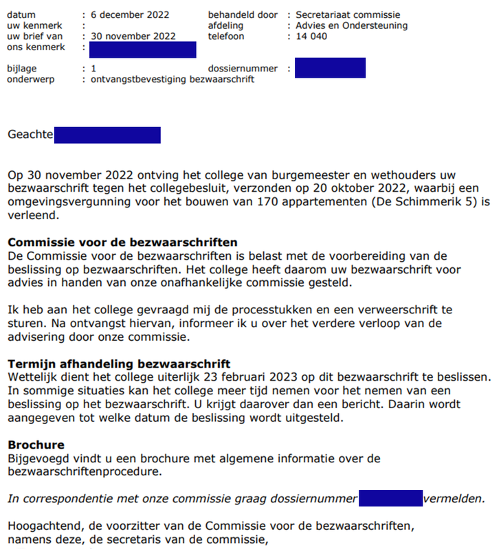 - Zienswijzen (= onze bezwaren op de plannen van initiatiefnemer / ontwikkelaar);