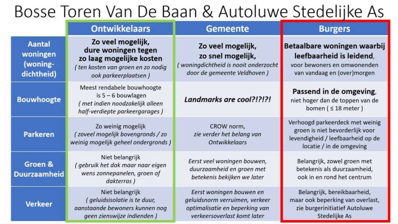 Deze twee aspecten, het aantal woningen en de hoge toren, maakten geen deel uit van de zo geroemde “samenspraak” maar bleken gewoon niet onderhandelbaar. Hoezo samenspraak dan samenspraak noemen als twee zulke belangrijke zaken al bij voorbaat vaststaan?