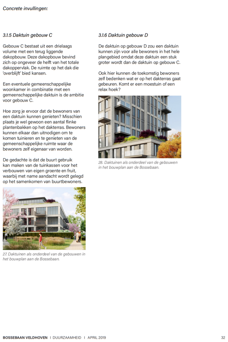 - Ook hoger gelegen daken kunnen worden vergroend in combinatie met energieopwekking (zonnepanelen en/of zonnecollectoren).