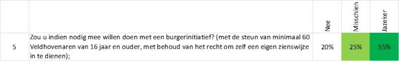 - Misschien (mede afhankelijk van inzage bij gemeente Veldhoven en/of uitkomst van deze enquête);